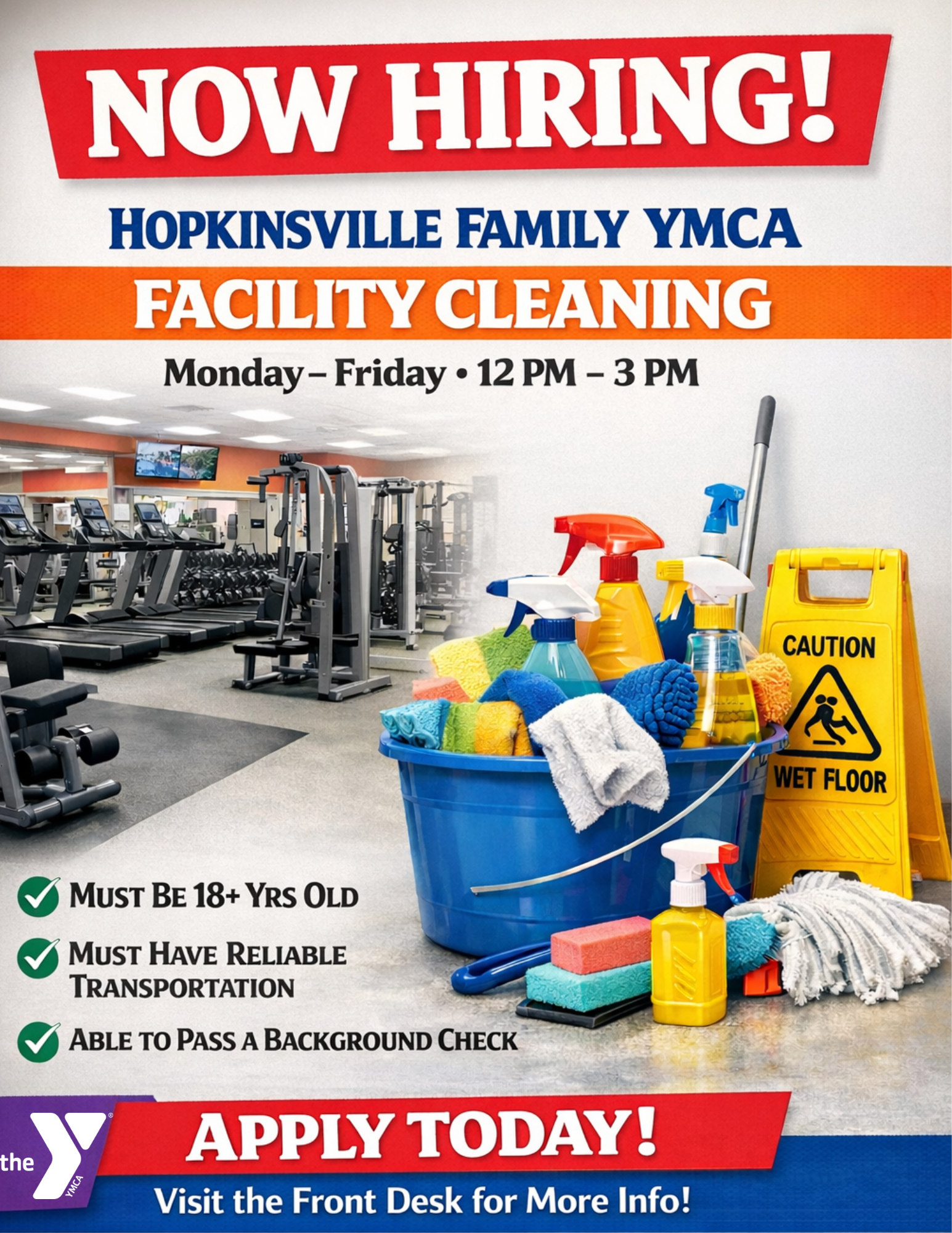 The YMCA is hiring for the positions below. Please stop by our welcome center to fill out an application or email your resume to jobs@hopkinsvilleymca.org.